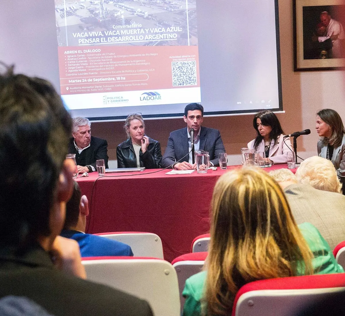 En el marco del creciente protagonismo que viene asumiendo Chubut en materia de políticas energéticas bajo el liderazgo del gobernador Ignacio “Nacho” Torres; el ministro de Hidrocarburos de la Provincia, Federico Ponce, expuso en Buenos Aires en el Conversatorio “Vaca Viva, Vaca Muerta y Vaca Azul: Pensar el Desarrollo Argentino”, organizado por la Escuela de Política y Gobierno de la Facultad de Ciencias Sociales de la Universidad Católica Argentina (UCA).