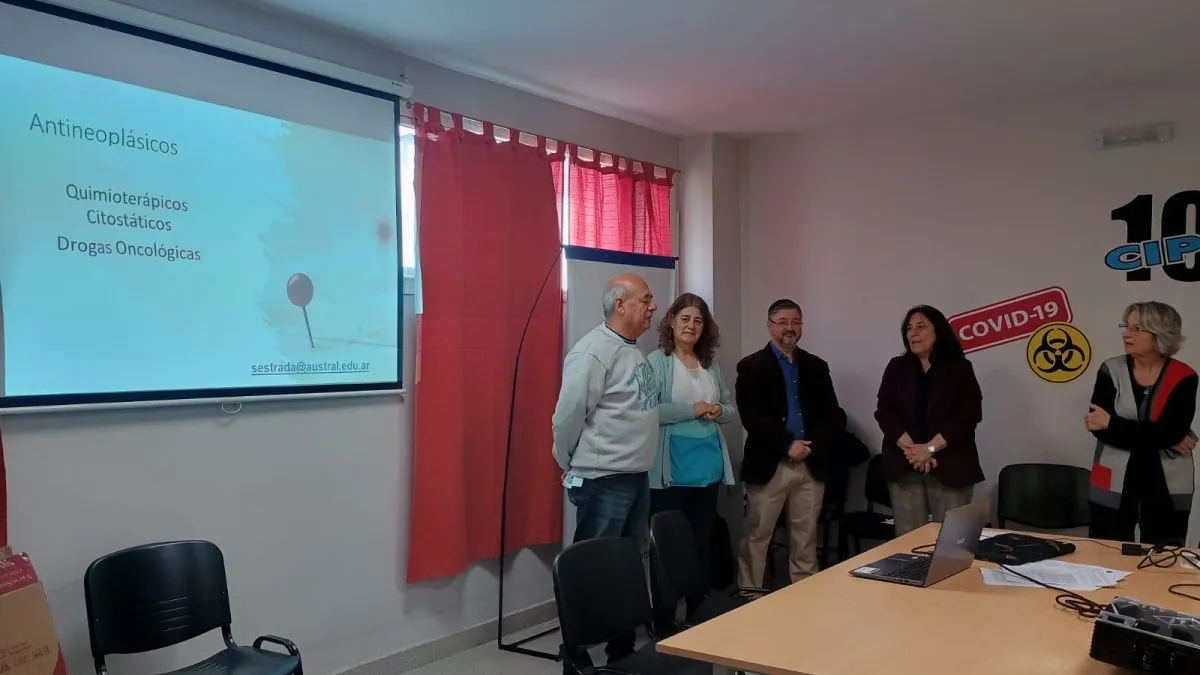 La actividad se desarrolla en el Aula del Área Programática Comodoro Rivadavia y fue presentada por la especialista María Margarita Rabhansl, directora de Proyecto por la Facultad de Ciencias Biomédicas de la Universidad Austral junto a la Directora Académica, y el especialista en atención oncológica Martín Villafañez como referente y docente local de la formación.
