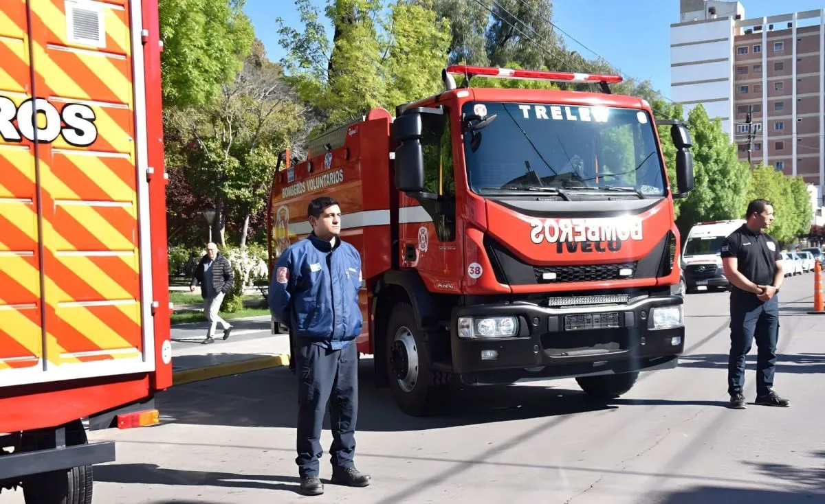 El intendente Gerardo Merino destacó la administración "austera y transparente" de la Asociación de Bomberos Voluntarios de Trelew, al participar ayer de la presentación de las nuevas unidades adquiridas, una forestal y otra cisterna, y un tráiler de recarga de equipos de respiración autónoma.