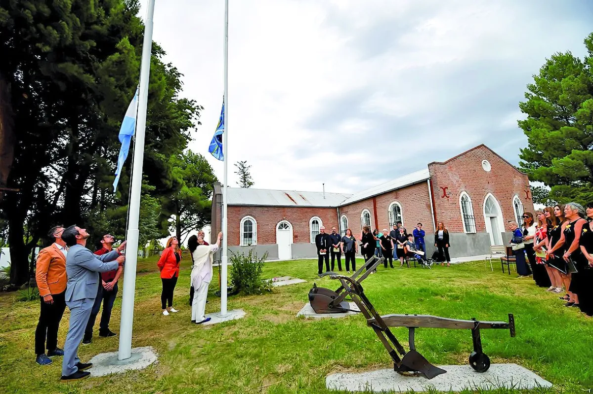 También, la inauguración de tres mástiles sobre los cuales flamean las banderas que nos identifican y nos unen: la del Chubut; de la República Argentina y de Gales.