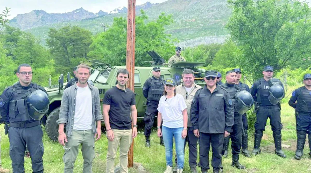Patricia Bullrich y el gobernador Ignacio Torres encabezaron el desalojo en el parque nacional “Los Alerces”. En la foto también puede observarse a Cristian Larsen, el funcionario más austero de Javier Milei.