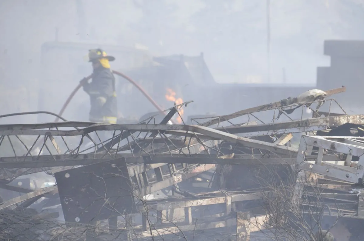 Ayer, con el fuerte ventarrón que soportó la zona, posiblemente algunos focos ígneos de la escombrera situada detrás del hotel “Su Estrella” volaron varios metros y llegaron hasta la planta asfáltica arrasando con diversos elementos inflamables como lo son algunos vehículos en desuso, un tráiler habitacional del sereno y otros elementos combustibles.