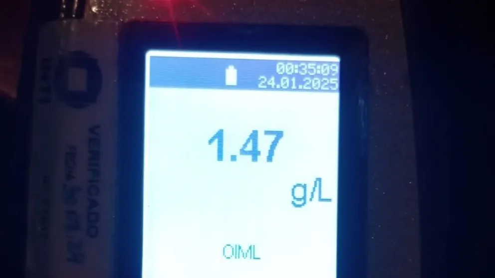 El conductor del rodado no solo infringía las normas de tránsito al circular sin luces, sino que tampoco portaba licencia de conducir ni Documento Nacional de Identidad. Al ser sometido a un test de alcoholemia, se confirmó que presentaba 1.47 g/l de alcohol en sangre, superando ampliamente el límite permitido.