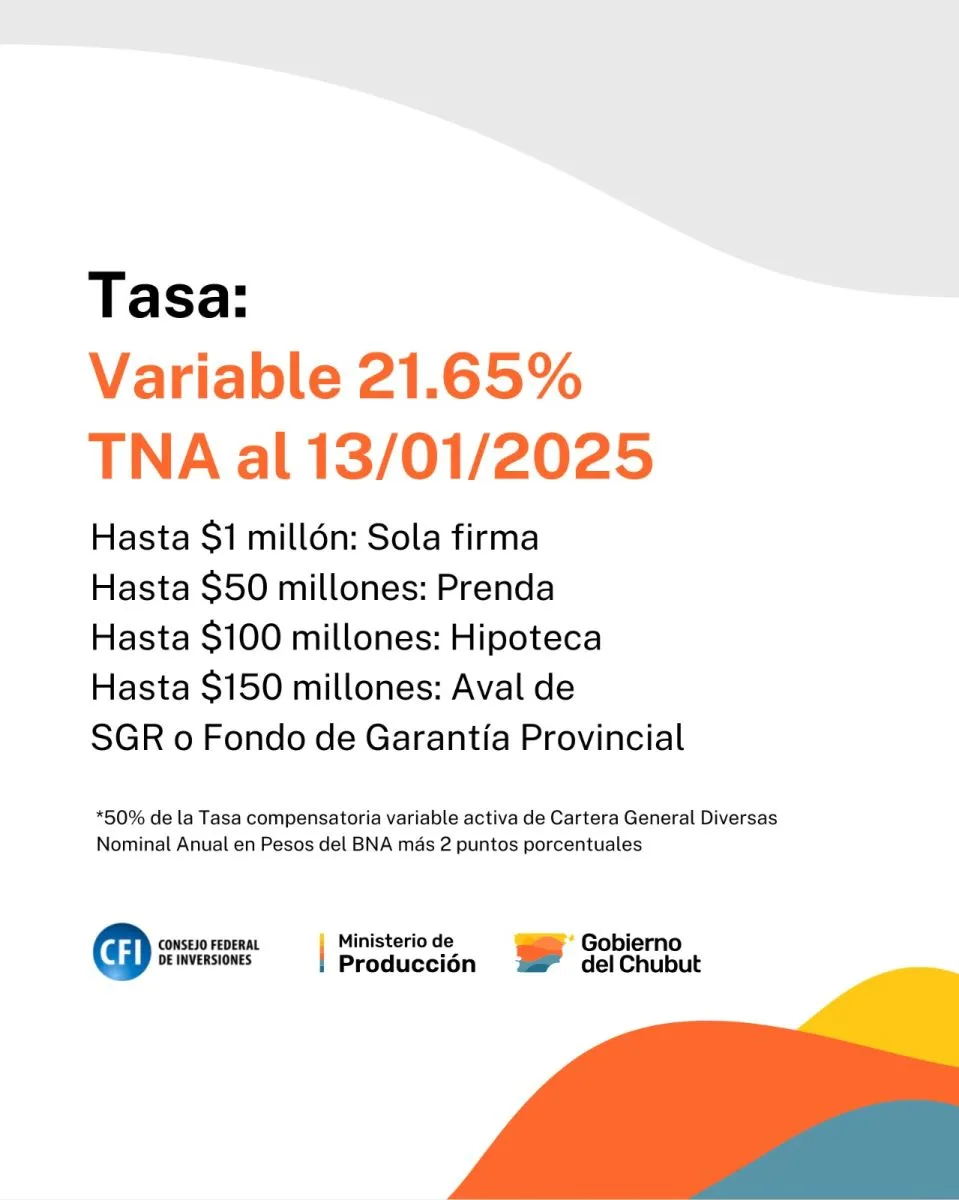 Con el objetivo de apoyar las diversas líneas de producción actuales en Chubut, los créditos van: