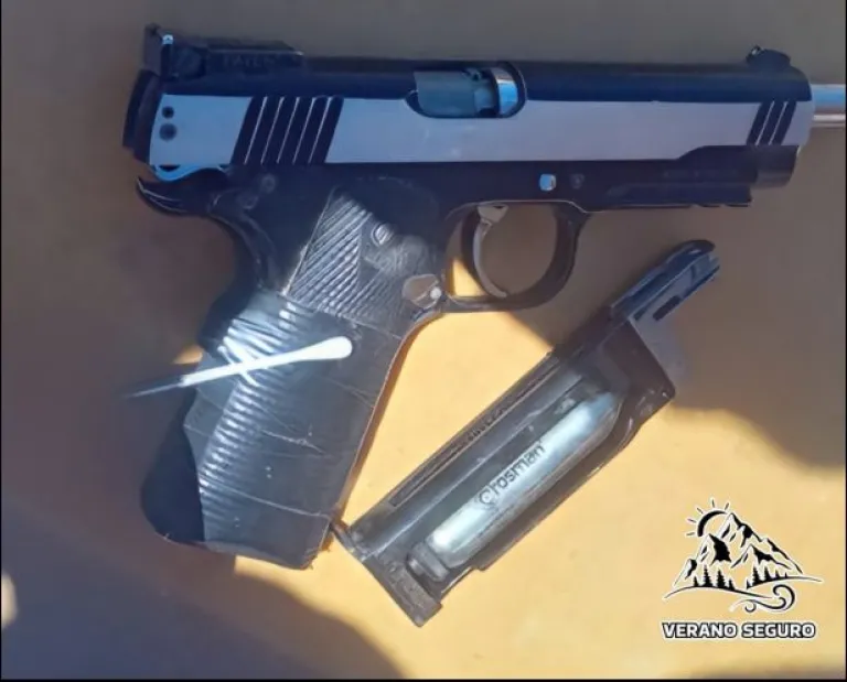 Según el informe policial el detenido portaba un arma de C02, marca Crossman, con cargador. La propietaria de la vivienda fue trasladada a la Comisaría de la Mujer para formalizar la denuncia y el hombre seguirá detenido hasta que se realice