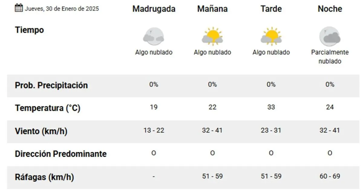 Este jueves, 30 de enero, se espera que la región enfrente un día de intensas temperaturas, según el informe del Servicio Meteorológico Nacional.