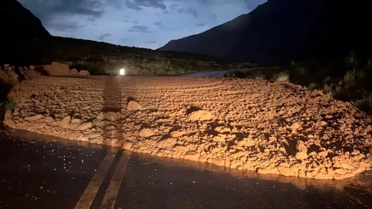 La masa de barro y rocas alcanzó a toda la traza del camino, lo que obligó a suspender el tránsito. Personal de Vialidad Nacional intervino entonces con maquinarias para el despeje.