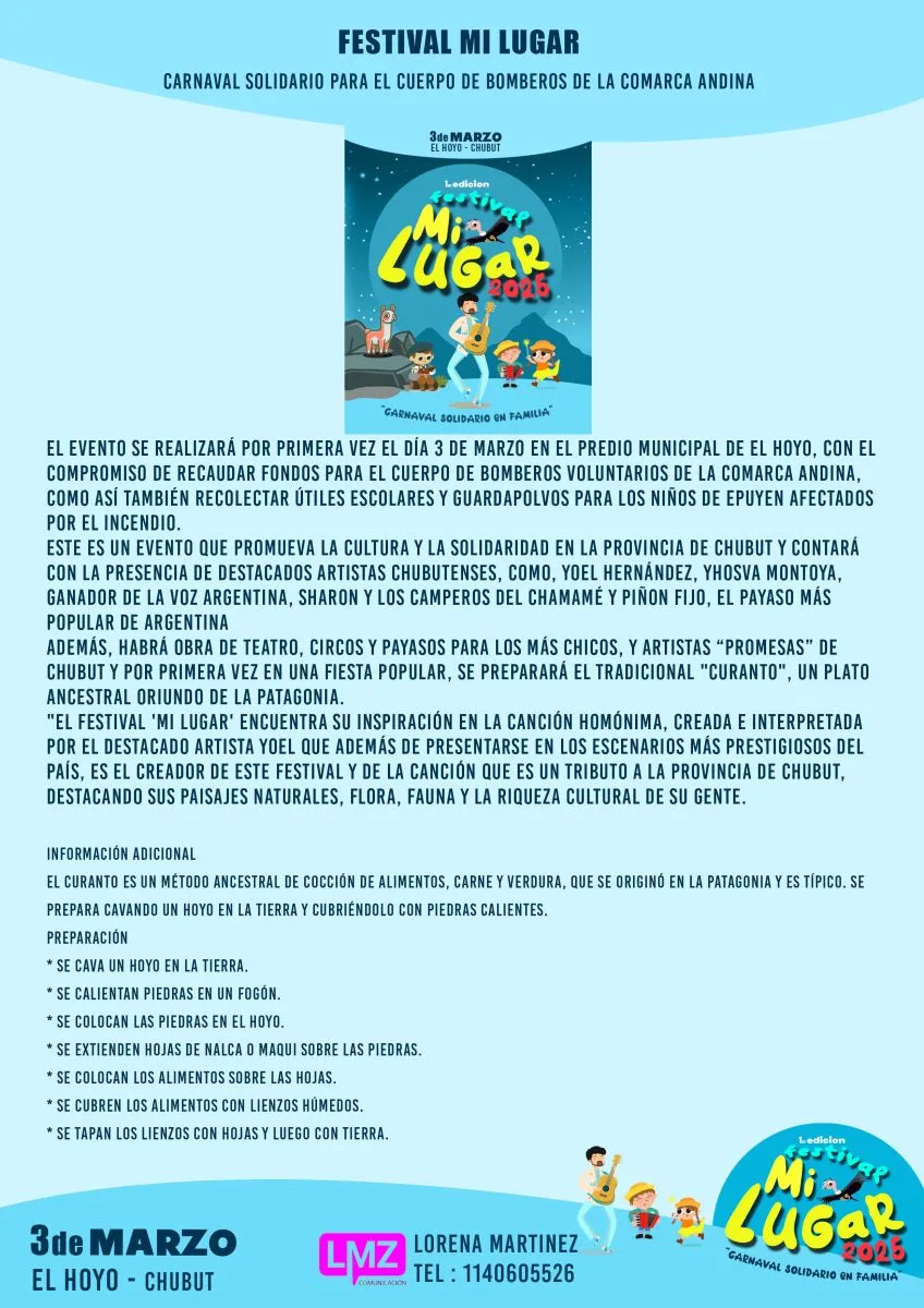 Más que un festival, Mi Lugar es una iniciativa que promueve la cultura y la solidaridad chubutense.