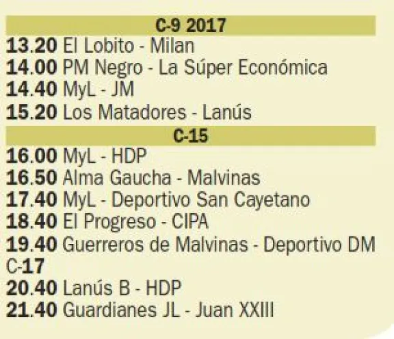 estarán participando las divisiones C-9, C-13, C-15 y C-17.