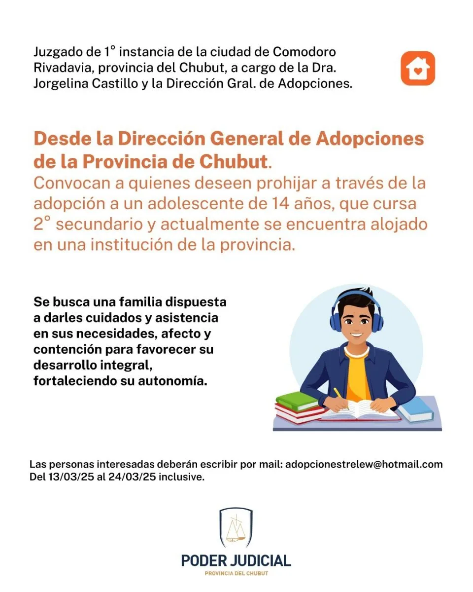 Convocatoria pública para la guarda de un adolescente en Comodoro Rivadavia