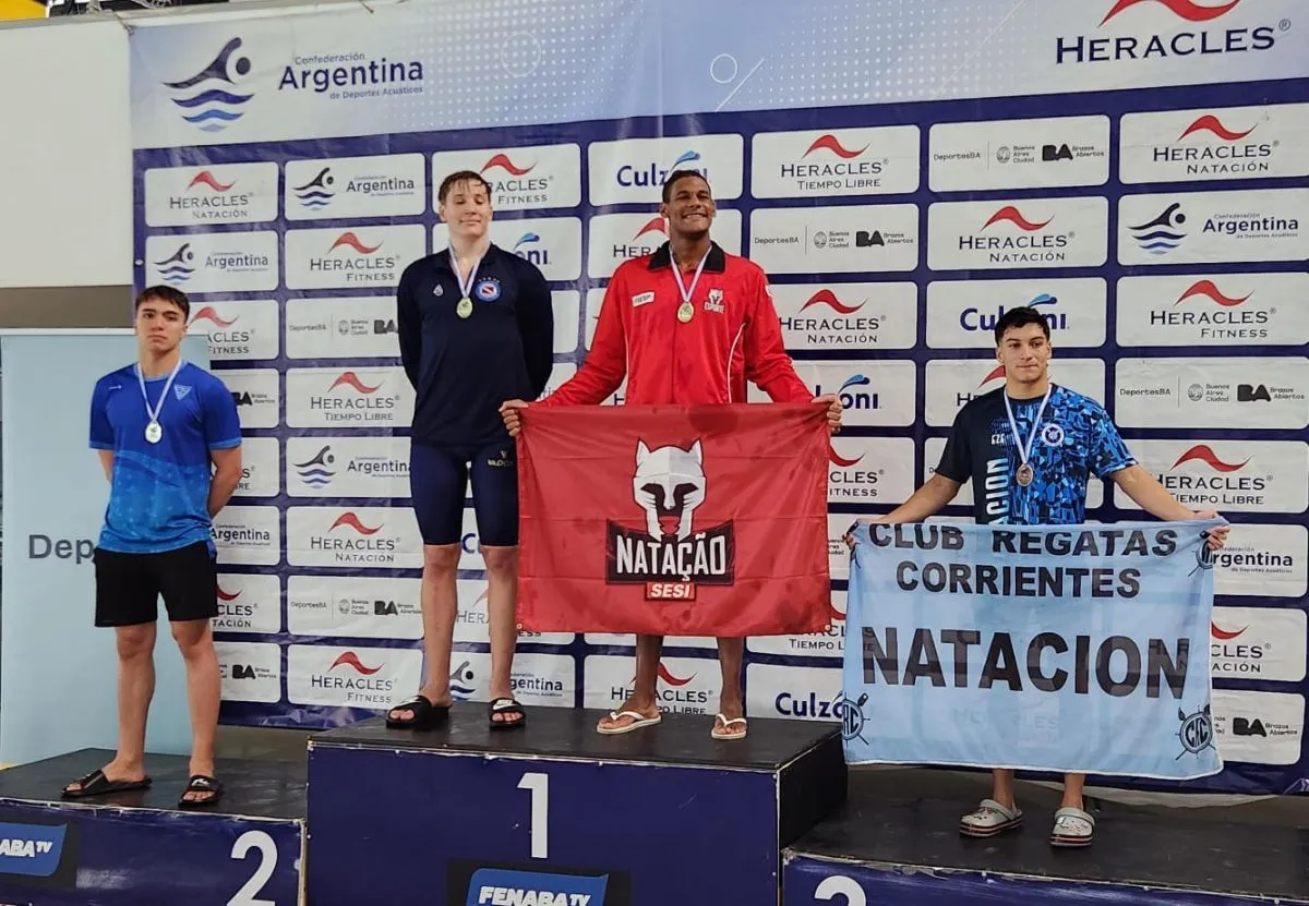 Es que en la categoría Juveniles 2 (17 y 18 años), con un tiempo de 1’08”44, Mateo Luna Aseff obtuvo el segundo puesto en los 100 metros pecho. El comodorense llegó detrás de Kaua Carvalho, quien integra un equipo invitado de Brasil llamado SESI que no computa en la competencia nacional, y Luis Fontana, de Argentinos Juniors. Luna Aseff también compitió en los 200 metros combinados y alcanzó la posición 16 con 2’23”31.