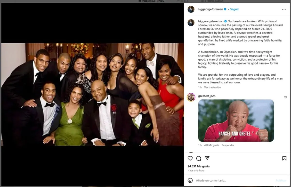 Fuera del boxeo, Foreman se destacó como empresario y predicador. Su familia pidió respeto por su privacidad en este difícil momento y agradeció las muestras de cariño recibidas.