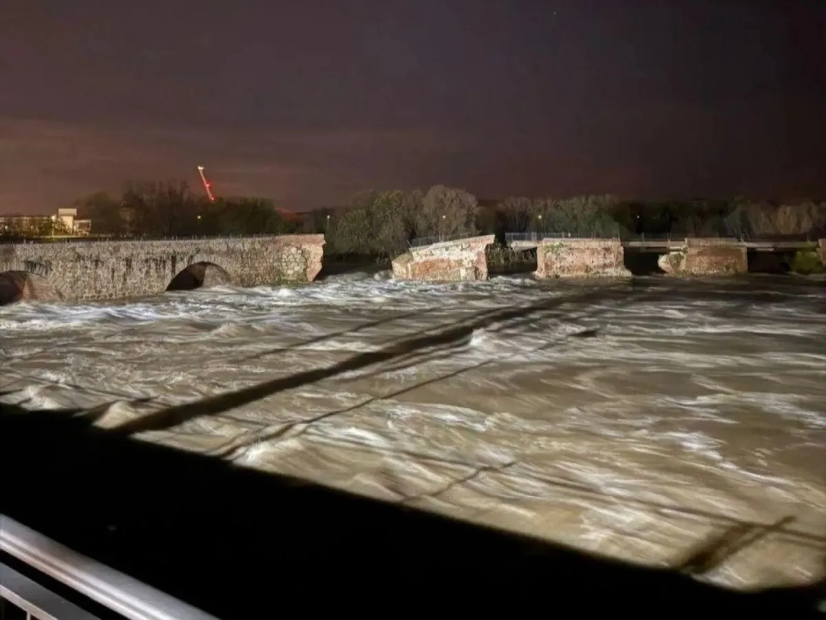 "Esta noche es un día terrible para la historia de Talavera. Nuestro puente viejo o 'romano' acaba de derrumbarse una parte", escribió en la red social X José Julián Gregorio, el alcalde de esta localidad de la provincia de Toledo, 120 km al suroeste de Madrid.