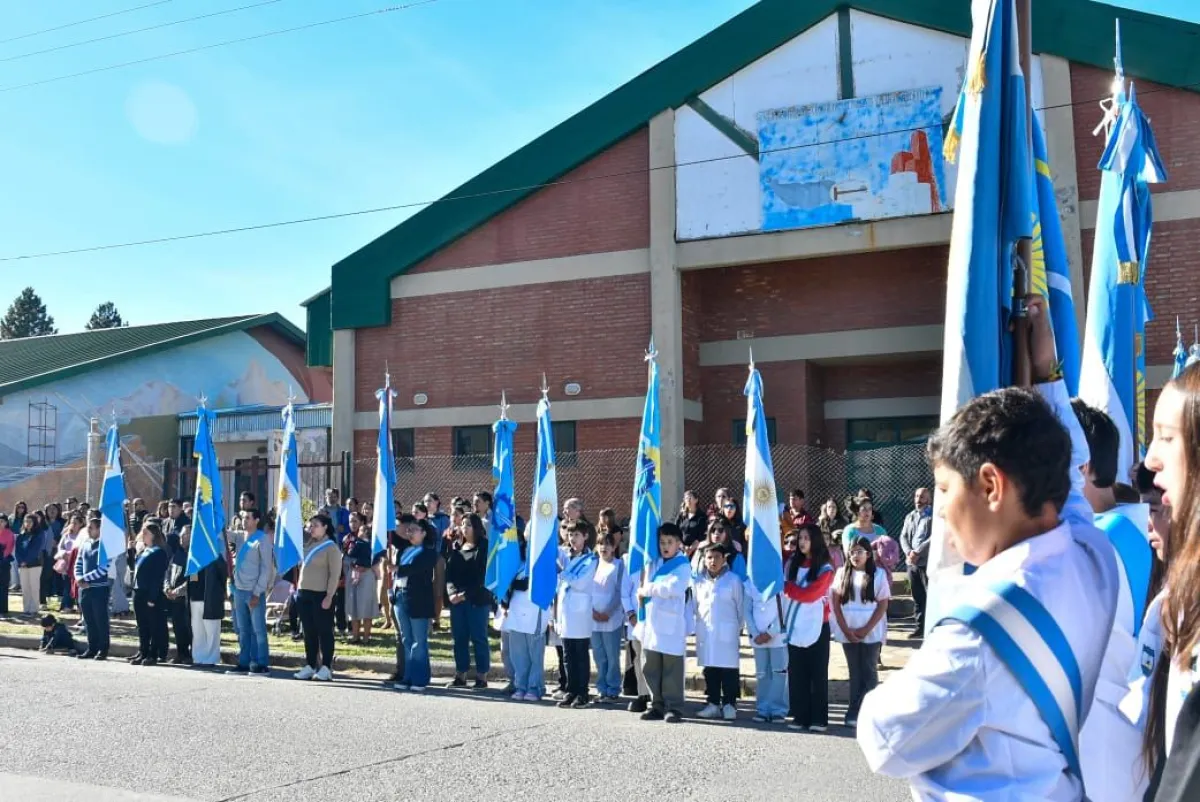 Cabe resaltar la importante cantidad de banderas de ceremonia que se hicieron presentes para ser parte de este significativo acto. Entre ellos, abanderados y escoltas de la escuela provincial Nº8, Nº24, Nº 54, Nº 159, Nº 179, Nº 205, ISFD 809, Instituto 815, Sede Esquel de la UNPSJB, Facultad de Cs Jurídicas. Como también integrantes de Comisión Cooperadora del Hospital Zonal Esquel y del Rotary Club. El cierre fue con el número artístico donde se presentó el grupo de danzas Remembrazas, con la obra denominada "Memoria".