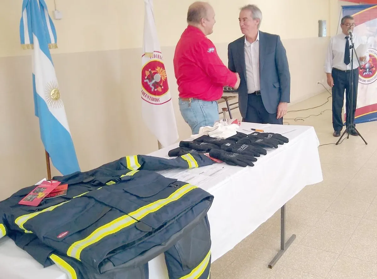 PAE entregó equipamiento a la Federación de Bomberos de Chubut, en un acto en Gaiman