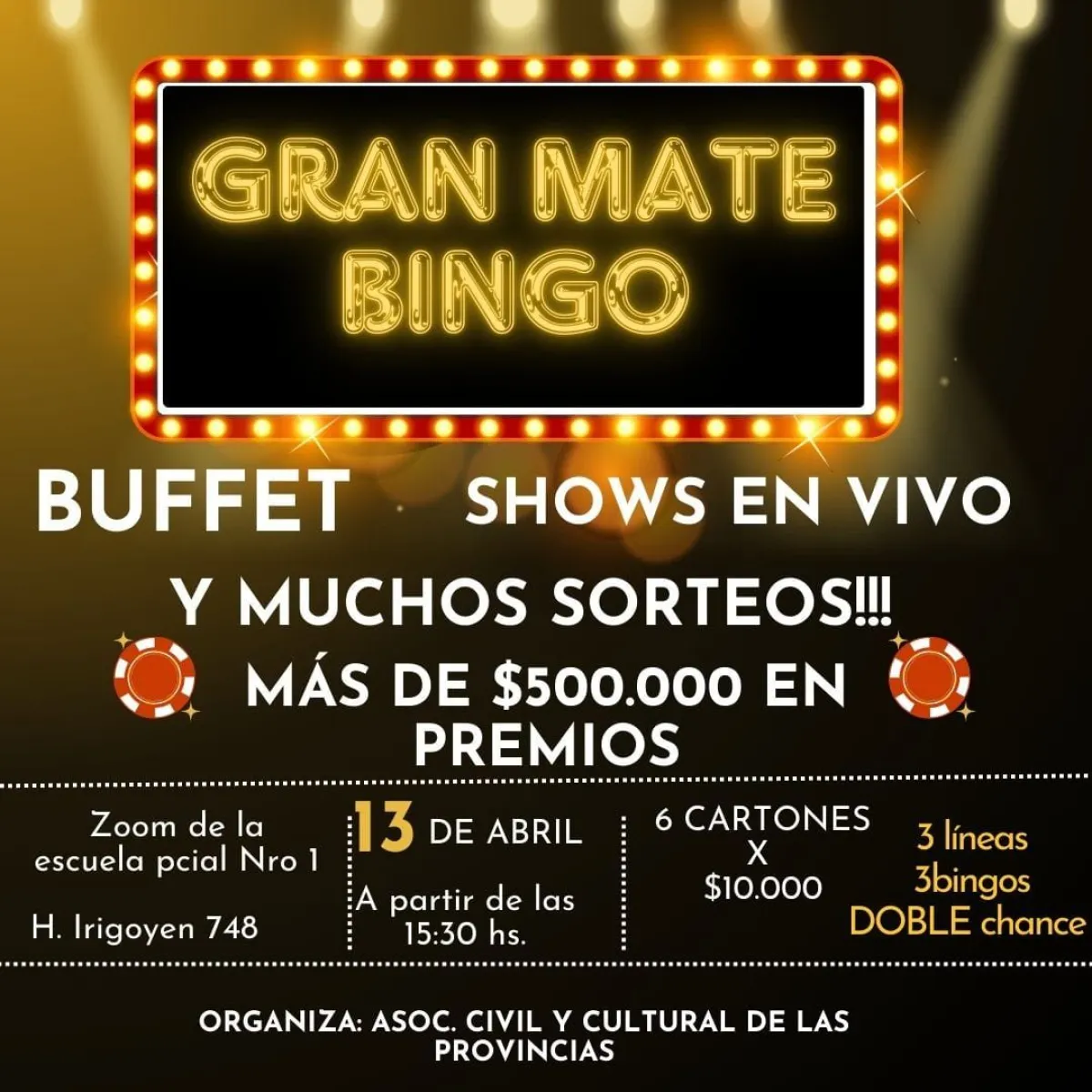 La Asociación Civil y Cultural de las Provincias llevará adelante este domingo 13 de abril un gran mate bingo, con el objetivo de reunir fondos para la tradicional Fiesta de las Provincias que se concretará en el mes de noviembre.