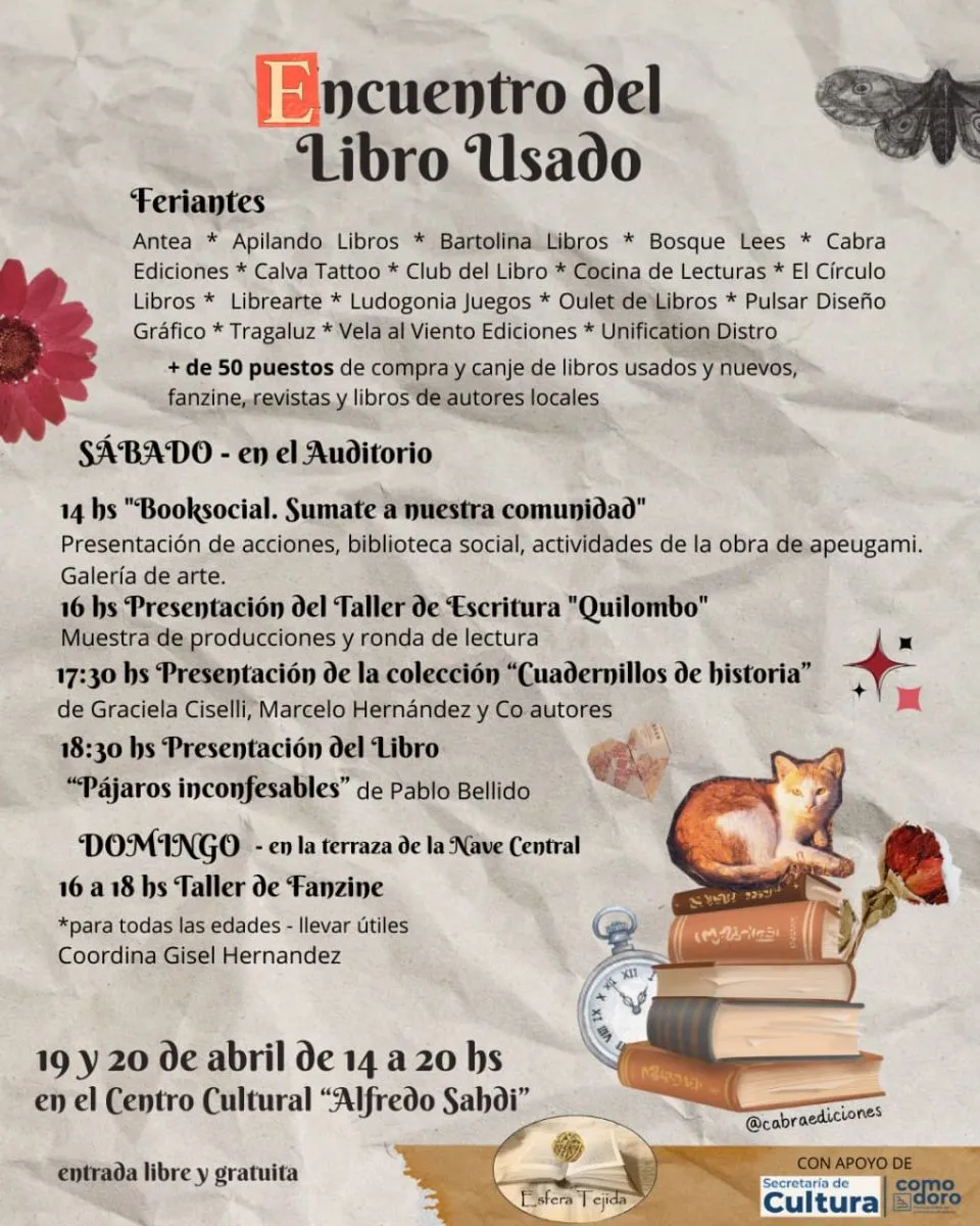 El colectivo Esfera Tejida tiene previsto realizar el próximo fin de semana el clásico Encuentro del Libro Usado, contando con entrada libre y gratuita.
