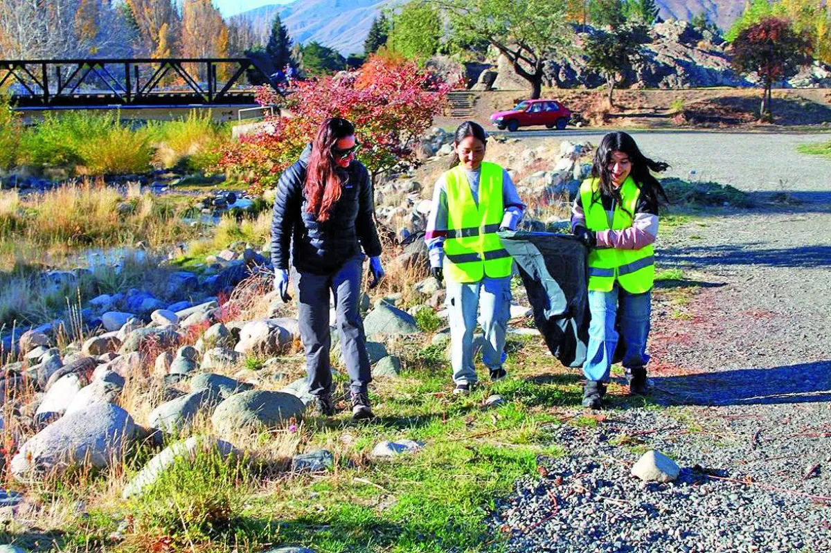 El municipio de Esquel y estudiantes realizaron una jornada de limpieza en La Cascada