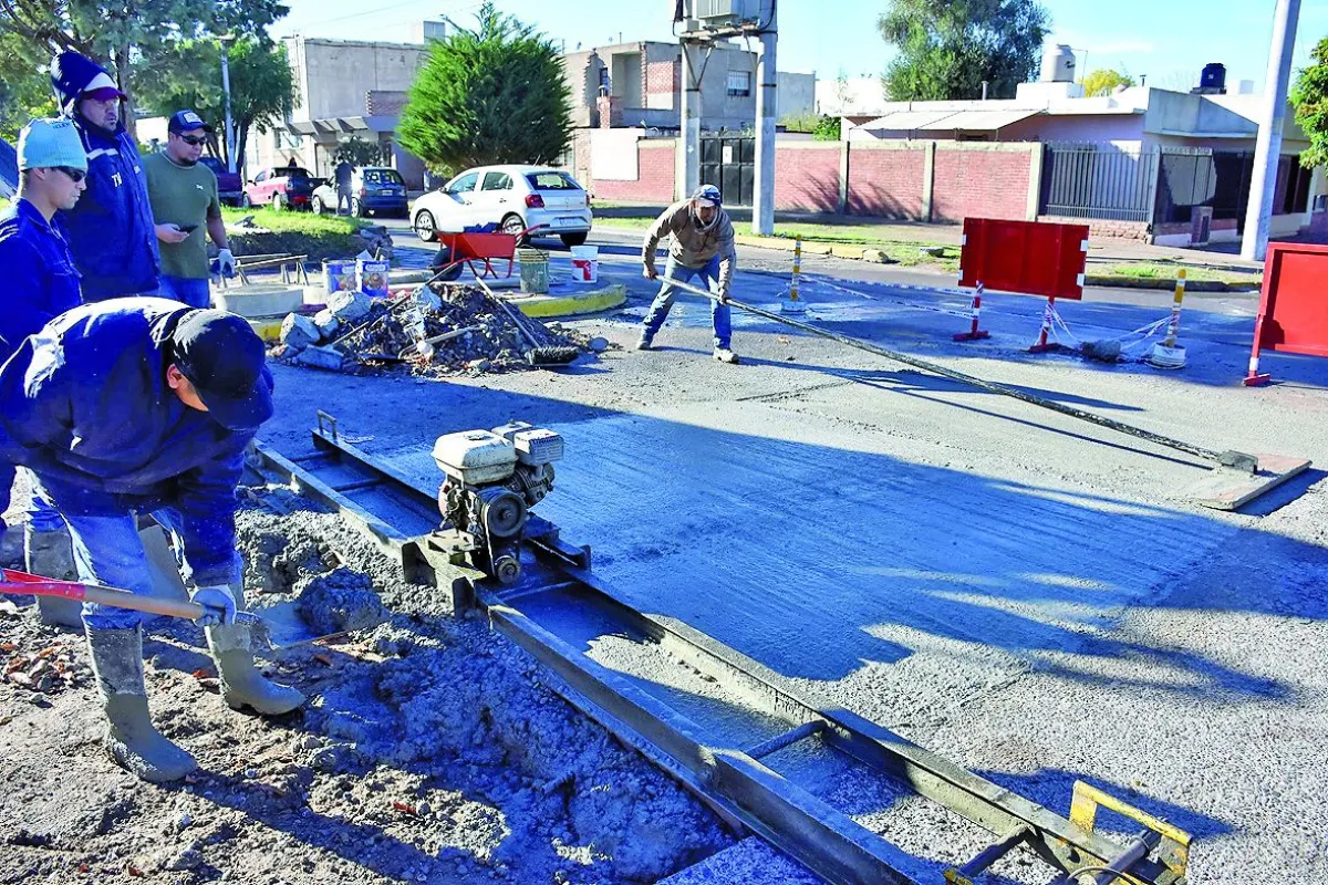 Este miércoles, se trabajó en el hormigonado de la avenida Guillermo Rawson y su intersección con Pecoraro.