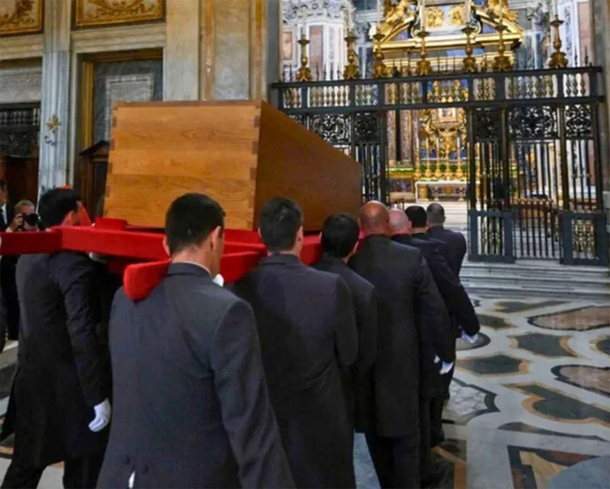 La ceremonia fue presidida por Giovanni Battista Re, decano del Colegio Cardenalicio, quien, tras pronunciar la homilía, acompañó los rituales de despedida. Luego, un cortejo fúnebre trasladó los restos del papa Francisco desde la Basílica de San Pedro hasta Santa María la Mayor, en un recorrido de seis kilómetros seguido por una multitud.