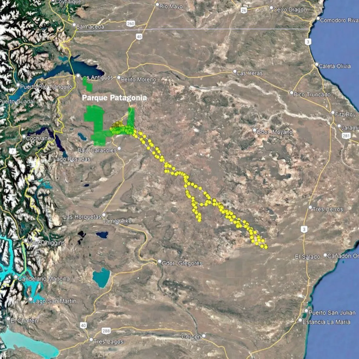 La hazaña de Koi sorprendió incluso a quienes llevan años monitoreando a la especie. Y es que, el collar de la hembra seguida por el equipo de Parque Patagonia, que estudia el comportamiento, los desplazamientos y la ecología del puma en la región noroeste de Santa Cruz, marcó un trayecto de más de 400 kilómetros desde la precordillera hasta el mar, ida y vuelta.