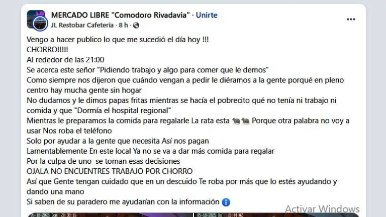 El robo ocurrió en un restobar de Comodoro Rivadavia el pasado domingo por la noche. Un joven, que aseguró estar en situación de calle y dormir en el hospital local, se acercó al lugar alrededor de las 21:00 para pedir trabajo o algo para comer.