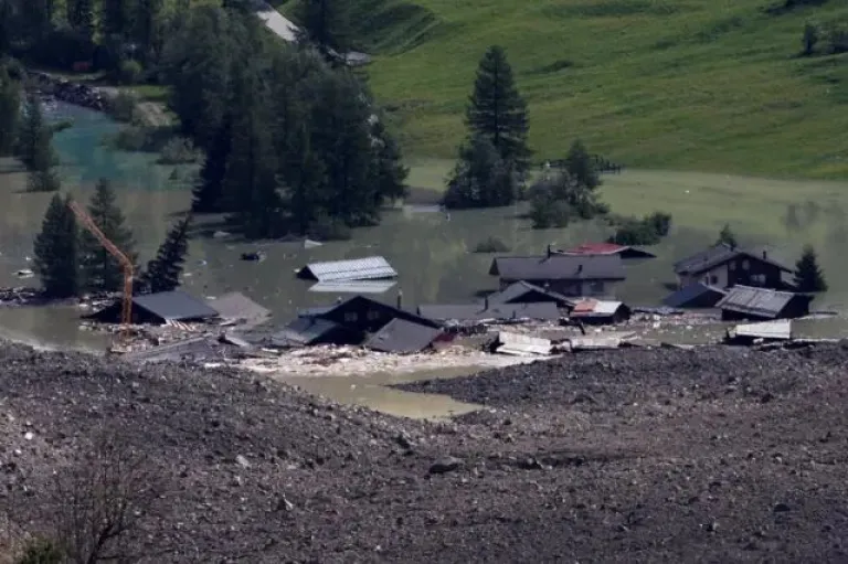 Las impresionantes imágenes que muestran cómo quedó el pueblo suizo sepultado por el derrumbe de un glaciar