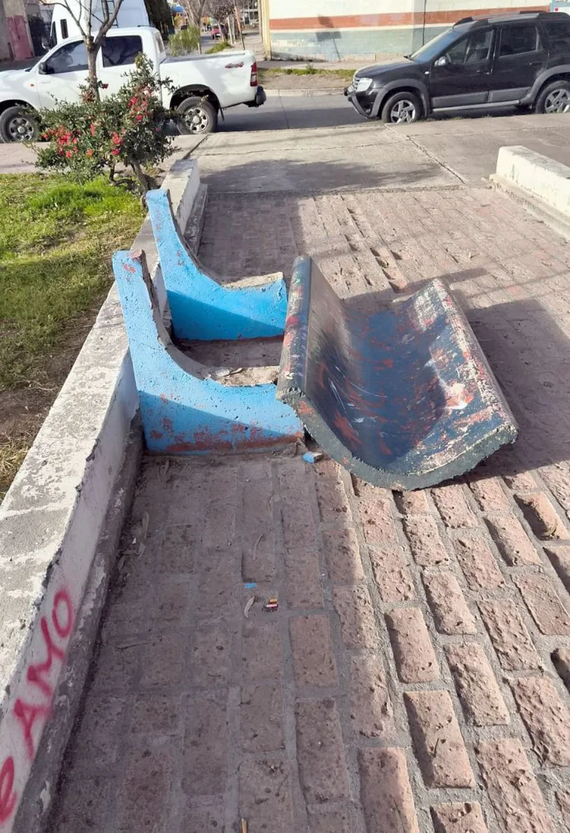 Autores anónimos rompieron bancos y otros elementos de uso comunitarios, afectando estos espacios que están pensados para el encuentro y el disfrute familiar.
