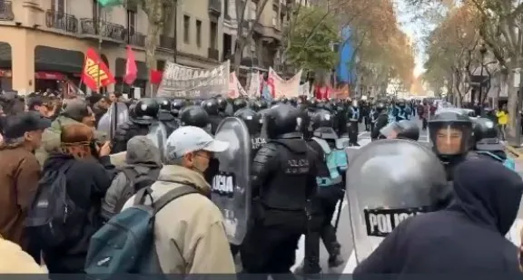 En horas de la tarde, mientras los manifestantes intentaban avanzar hacia Plaza de Mayo, la policía trató de contenerlos a la altura de la intersección de avenida de Mayo y 9 de julio.
