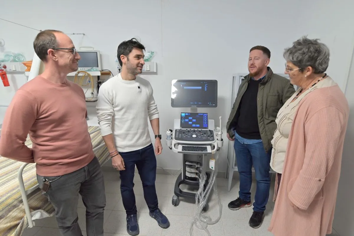Durante su recorrida por la localidad, Torres visitó el Hospital de Dolavon, donde entregó un ecógrafo Mindray DC de 40 cristales, un moderno equipo de diagnóstico que permitirá fortalecer la capacidad operativa del nosocomio local y brindar atención a vecinas y vecinos de localidades cercanas.