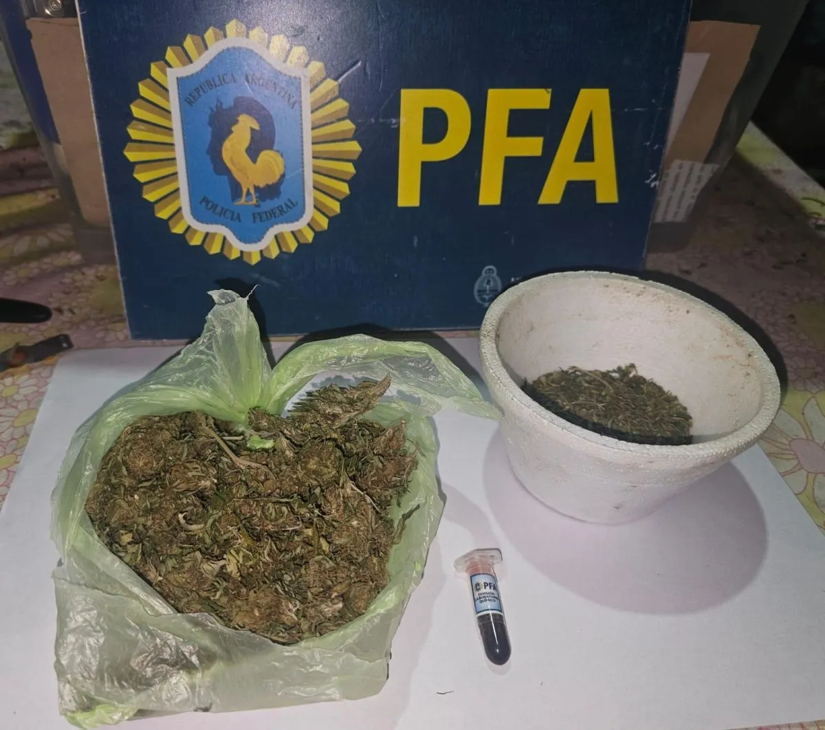 Los detenidos, ambos mayores de edad, quedaron a disposición del magistrado interventor por infracción a la Ley Nacional de drogas.