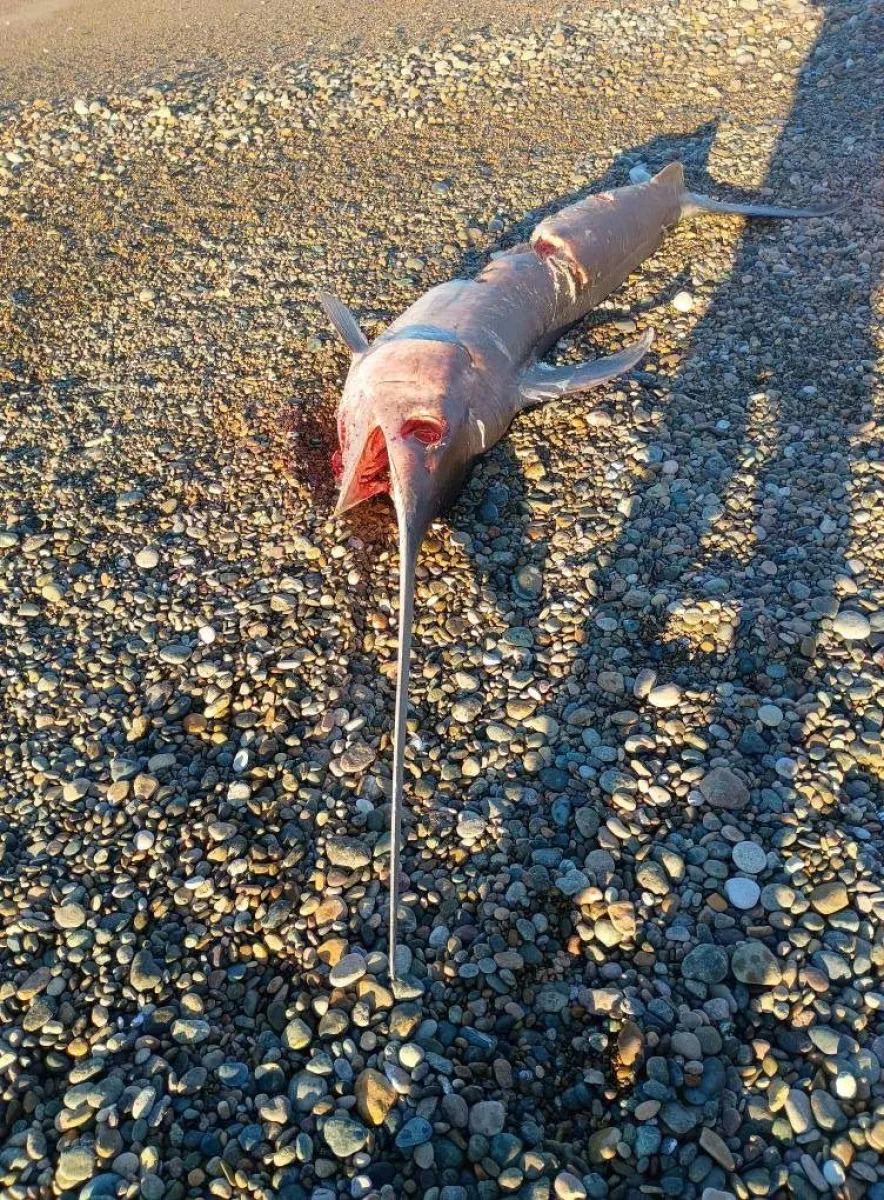 Apareció un pez espada muerto en Bajo Los Huesos y generó asombro en redes