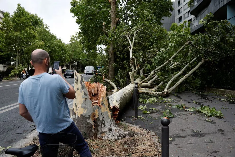 Esta tormenta se produjo después de una ola de calor que había elevado las temperaturas en gran parte de Francia, generando las condiciones para fenómenos meteorológicos extremos. El contraste entre el calor acumulado y la llegada de aire frío provocó lluvias torrenciales, vientos fuertes y descargas eléctricas, poniendo a prueba la infraestructura. La oficina de seguridad civil, citada por France Info, informó que "fuertes lluvias cayeron sobre París y fuertes vientos derribaron decenas de árboles, que cubrían las calles el jueves".