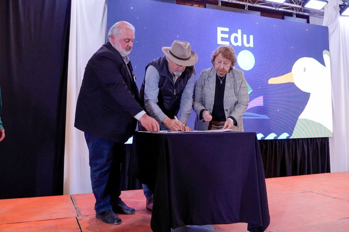 También enmarcado en el acto de cierre de la muestra EDUCO, el intendente Othar Macharashvili; el presidente de Comodoro Conocimiento, Rubén Zárate; y la rectora de la Universidad local, Lidia Blanco, firmaron un convenio de cooperación para trabajar en forma conjunta en cuestiones inherentes a la inteligencia artificial.