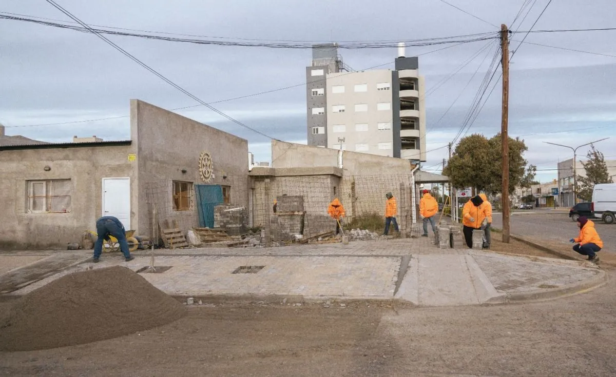 Una de las acciones destacadas tiene lugar en la sede del Rotary Club de Rawson, donde el municipio avanza en la segunda y última etapa del adoquinado de la vereda de la conocida “Casa de la Amistad”.
