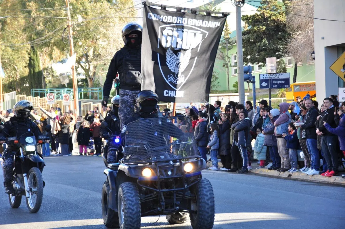 En torno a ello, el coronel mayor Claudio Cervigni, comandante de la IX Brigada Mecanizada, indicó: “Pasaron las fuerzas armadas, pero también las fuerzas federales de seguridad, Gendarmería, Prefectura, la Policía de la provincia del Chubut, los veteranos de guerra... Realmente, son los que nos motivan cada día a trabajar y celebrar la fecha más importante de nuestro calendario patriótico, que es el 9 de Julio, la declaración de nuestra independencia”.
