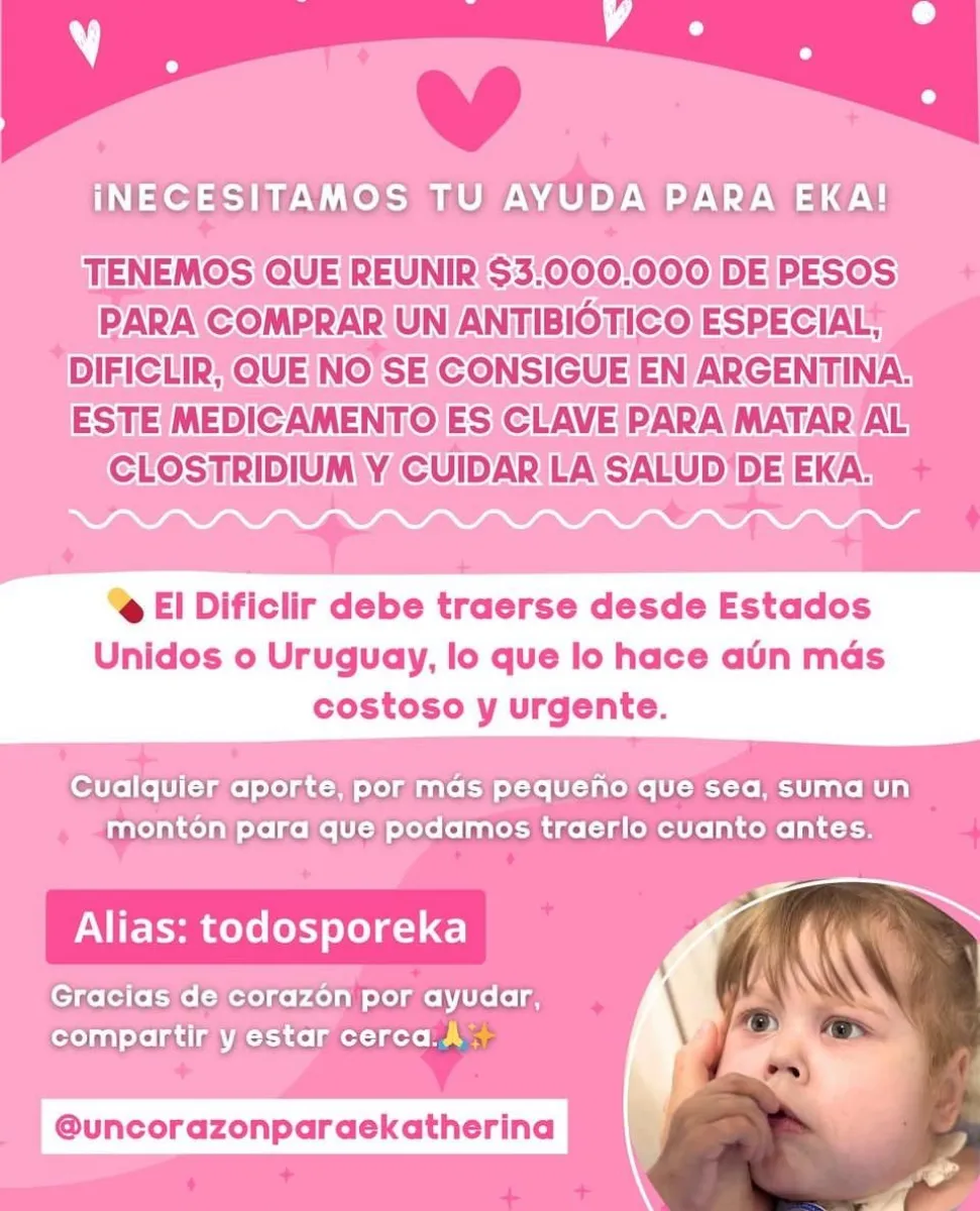 Todos por Ekatherina: necesita un costoso antibiótico que no se consigue en Argentina