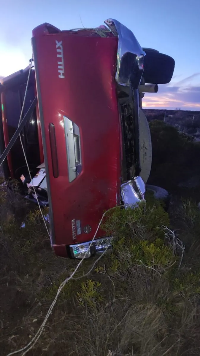 Un accidente de tránsito se registró en la tarde de este lunes en la Ruta Nacional Nº 3, a la altura del kilómetro 1678, en cercanías del acceso a Bahía Bustamante. Un vehículo Toyota Hilux color bordo, dominio AD 866 ZC, protagonizó un vuelco que dejó a sus dos ocupantes con diversas lesiones, siendo ambos trasladados a Trelew para recibir atención médica.