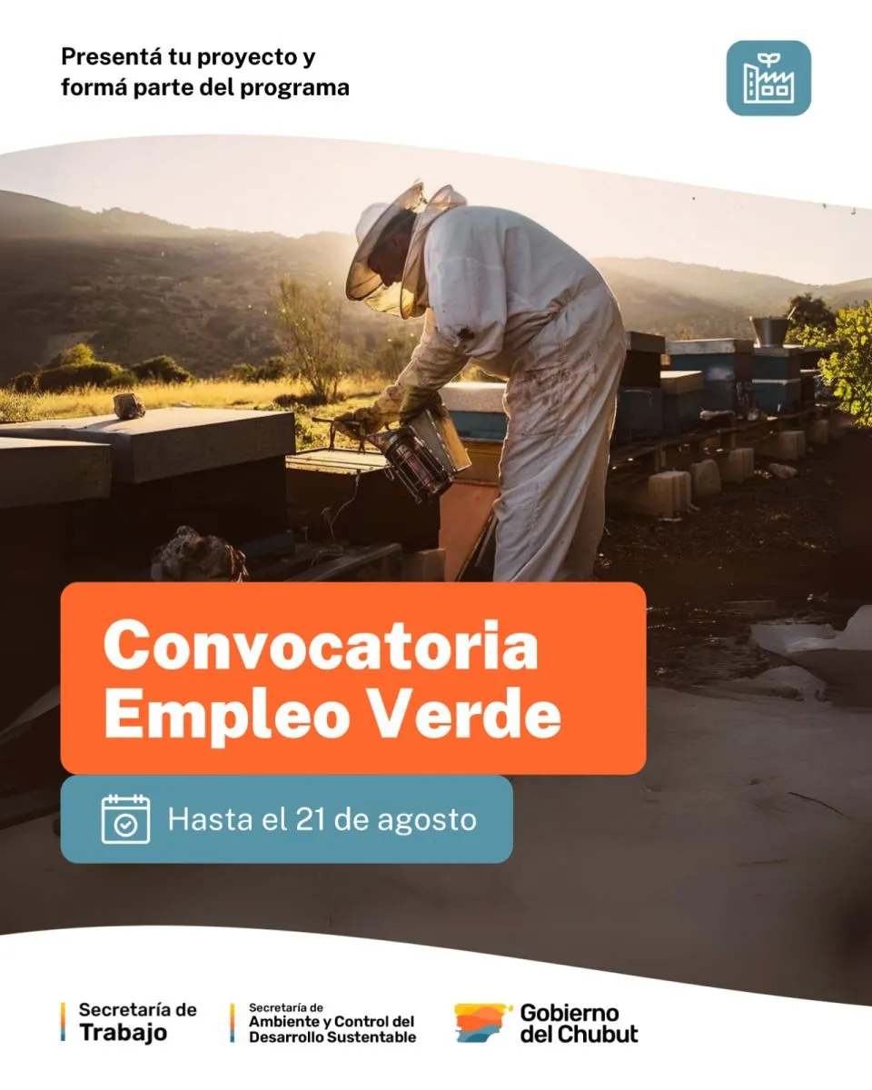 Los interesados en postular sus proyectos pueden consultar las bases y condiciones en https://trabajo.chubut.gov.ar/convocatoria-2025-fomentar-empleo-verde/