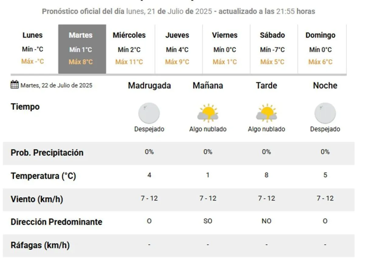 Pronóstico para este martes 22 de julio en Comodoro Rivadavia y Rada Tilly
