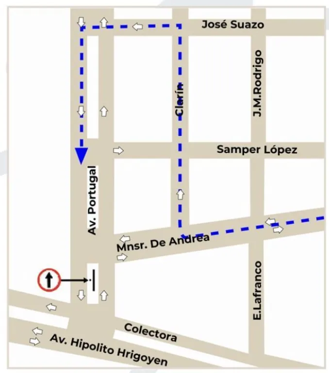 El nuevo circuito de tránsito establece que, a partir de ahora, los vehículos deberán transitar primero por la calle Clarín, para luego descender por José Suazo y finalmente retomar la Avenida Portugal.