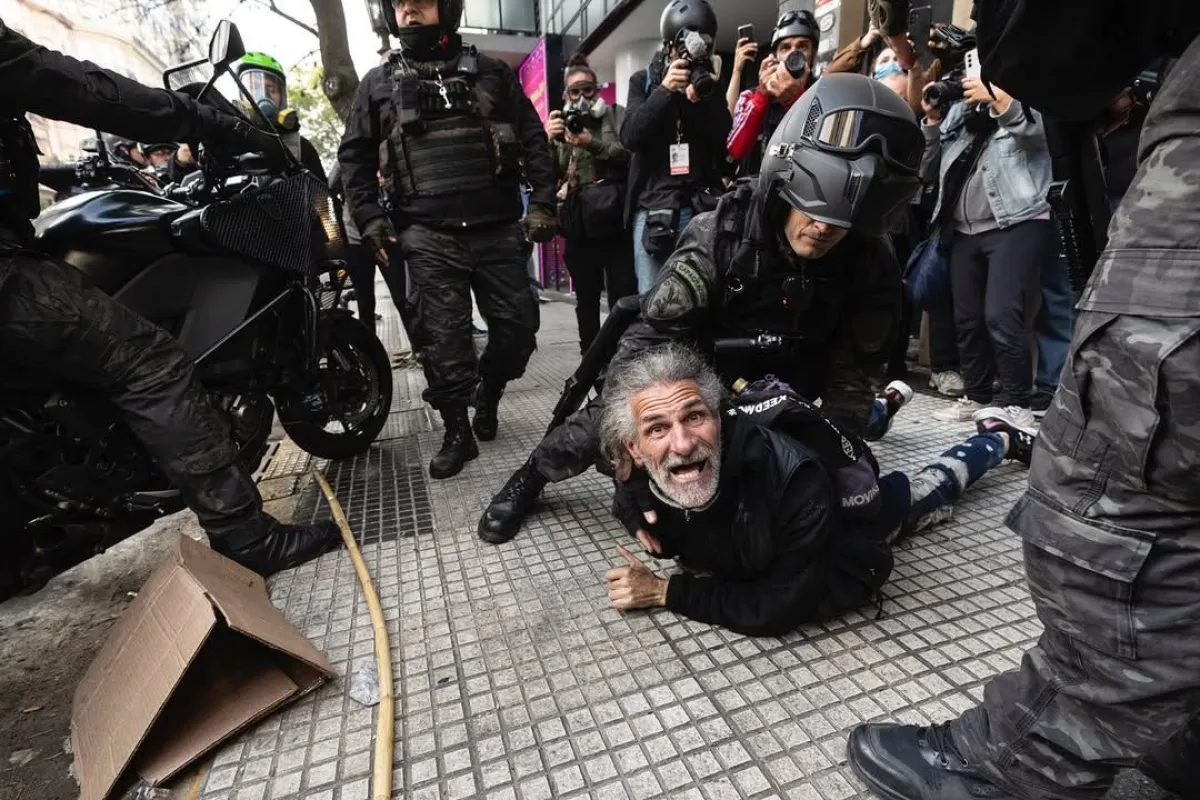 A comienzos de este mes, mientras cubría la represión durante una movilización de jubilados y trabajadores en la Ciudad de Buenos Aires, sufrió el impacto del camión hidrante de la policía. Durante la entrevista con Crónica, todavía se resentía de aquella molestia.