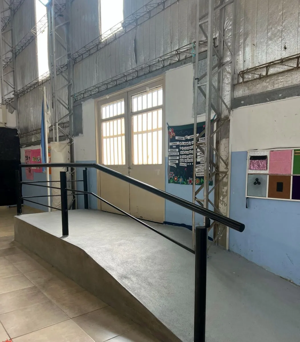 Por otra parte, se anexó al proyecto la construcción de una rampa que permite el acceso desde el gimnasio al nuevo patio trasero, lo que permite que se mejoren las condiciones de accesibilidad para los estudiantes que así lo requieran por cuestiones de movilidad.
