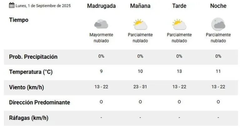 Sin embargo, septiembre comenzará con un día muy agradable, sin posibilidades de lluvias o ráfagas fuertes.