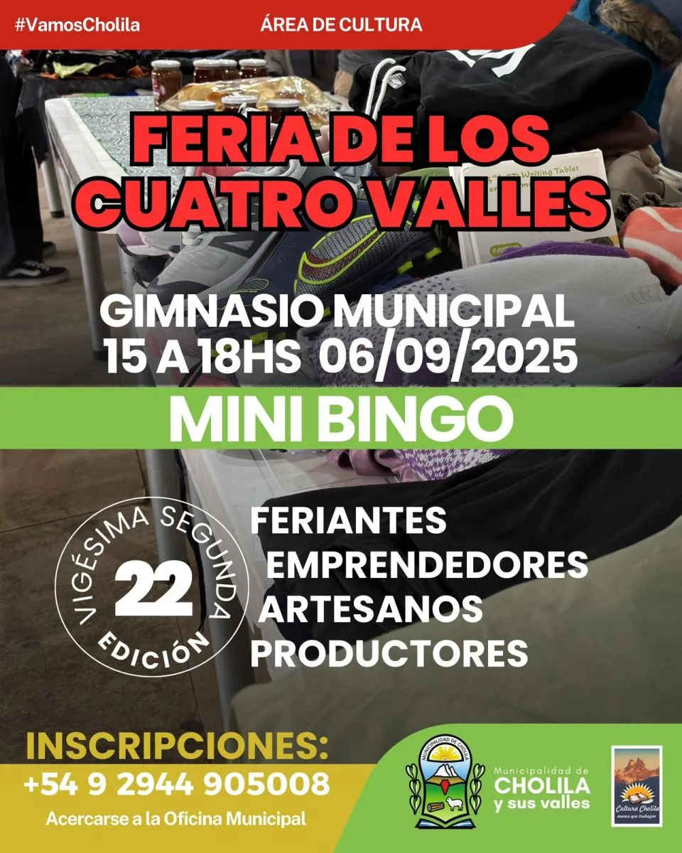 La Municipalidad de Cholila invita a feriantes, emprendedores, artesanos y productores a sumarse a la 22.° edición de la Feria de los Cuatro Valles.