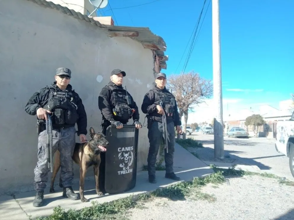 Una guardia de Infantería se instaló en la esquina de la casa del mecánico para disuadir cualquier tiroteo. Los efectivos llevaron a Sao, un pastor belga que se hizo famoso por haber evitado un femicidio y también intervino en un motín en el Centro de Detención.