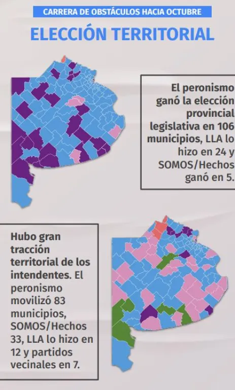 El nuevo informe #HilandoFino de la consultora La Sastrería, destaca la tracción de los intendentes de la provincia, e indica que el peronismo movilizó un total de 83 municipios, SOMOS/Hechos 33, LLA un total de 12 y partidos vecinales 7.