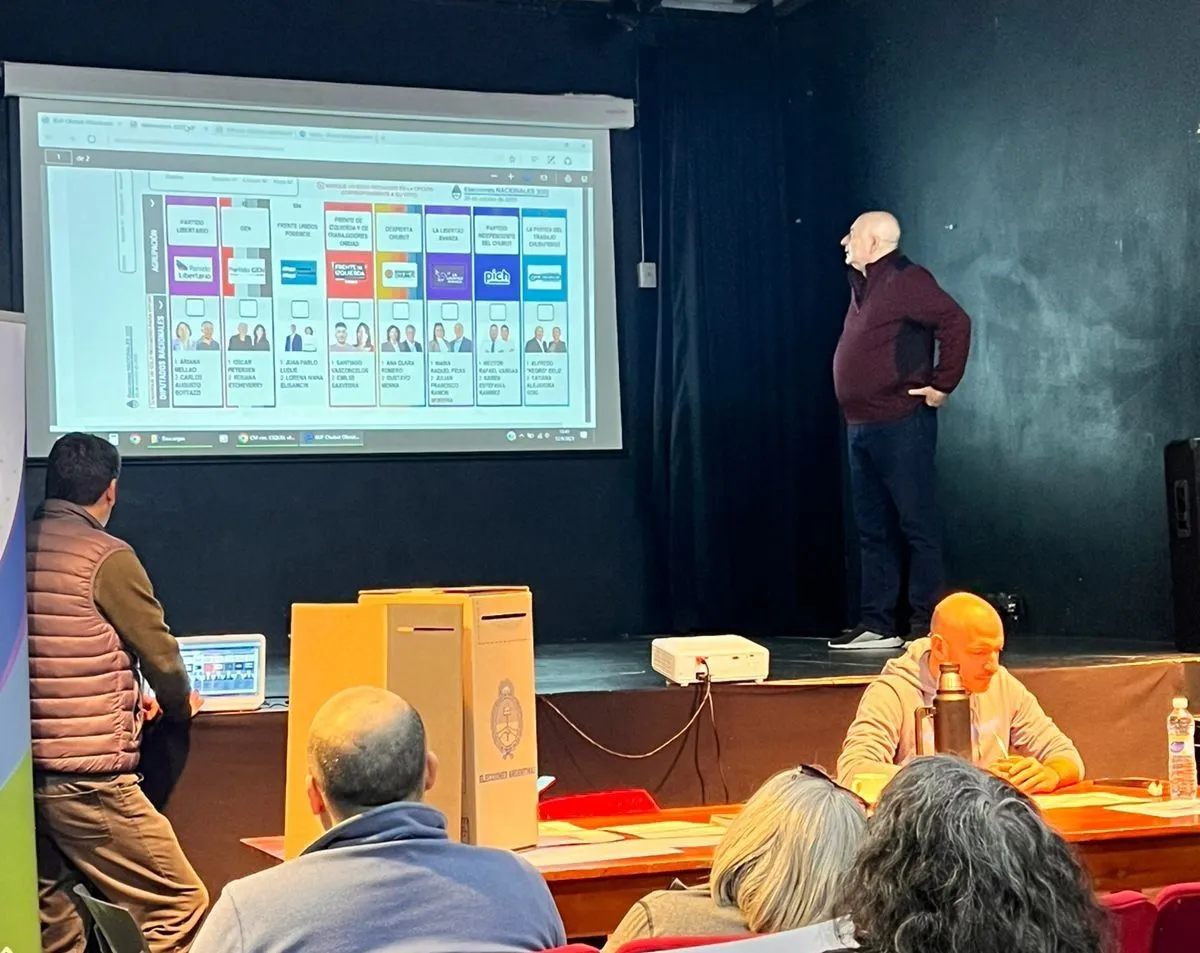Las capacitaciones incluyeron simulaciones de actos electorales para familiarizar a los asistentes con la boleta única, que se implementará en toda la provincia para elegir diputados nacionales y definir el referéndum sobre la enmienda constitucional para eliminar los fueros parlamentarios.