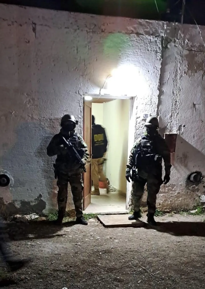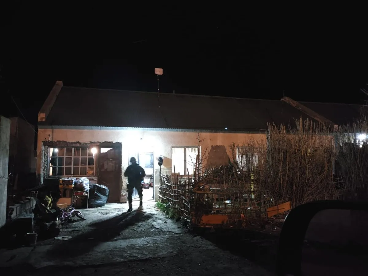 Las diligencias se desarrollaron de manera simultánea en cuatro domicilios de la localidad, ubicados en Gobernador Gregores al 100; Barrio 118 Viviendas; Benigno Fernández al 600 y Gobernador Lista al 200, con apoyo logístico y preventivo en distintos puntos estratégicos de la ciudad.