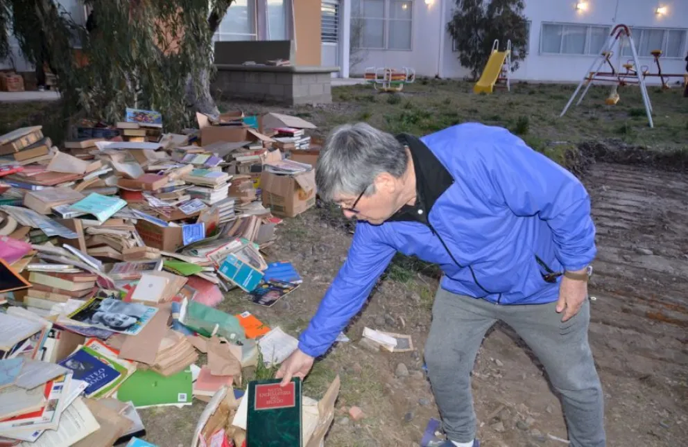 Valle C: Tiraron los libros de la primera biblioteca popular del Chubut al suelo